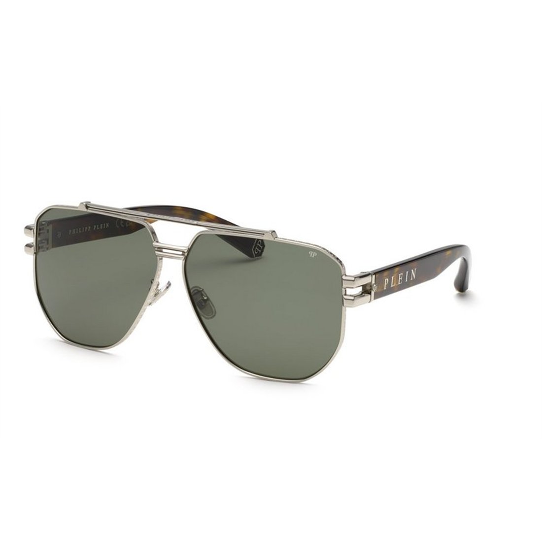 Philipp Plein SPP185 0K07   ||   Armação: SHINY PALLADIUM W/SEMI MATT BLACK PARTS / Lentes: GREEN